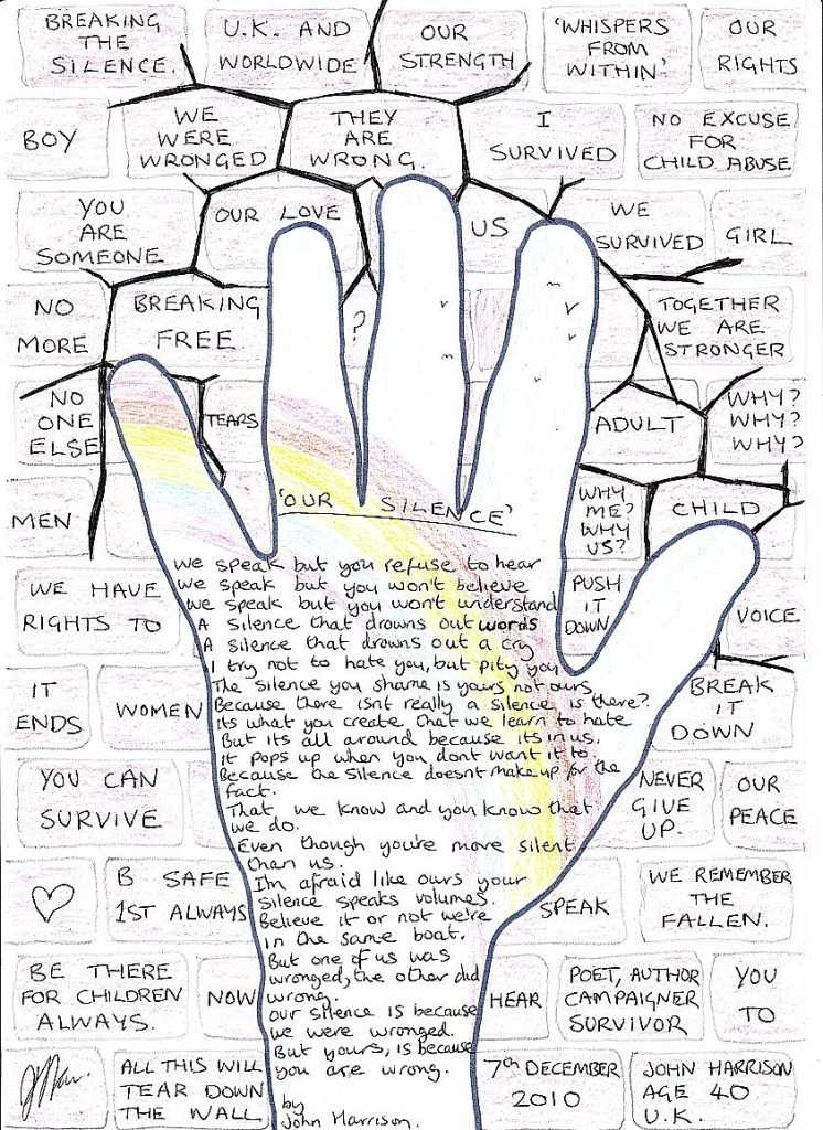 You can see my Poem ‘Our Silence’ which is on my handprint I sent in. There’s also a video of my poem you can see below. I helped to spread the word about the project along with others. The link below takes you to the page on the monument. There’s also a mention of my work there too.
